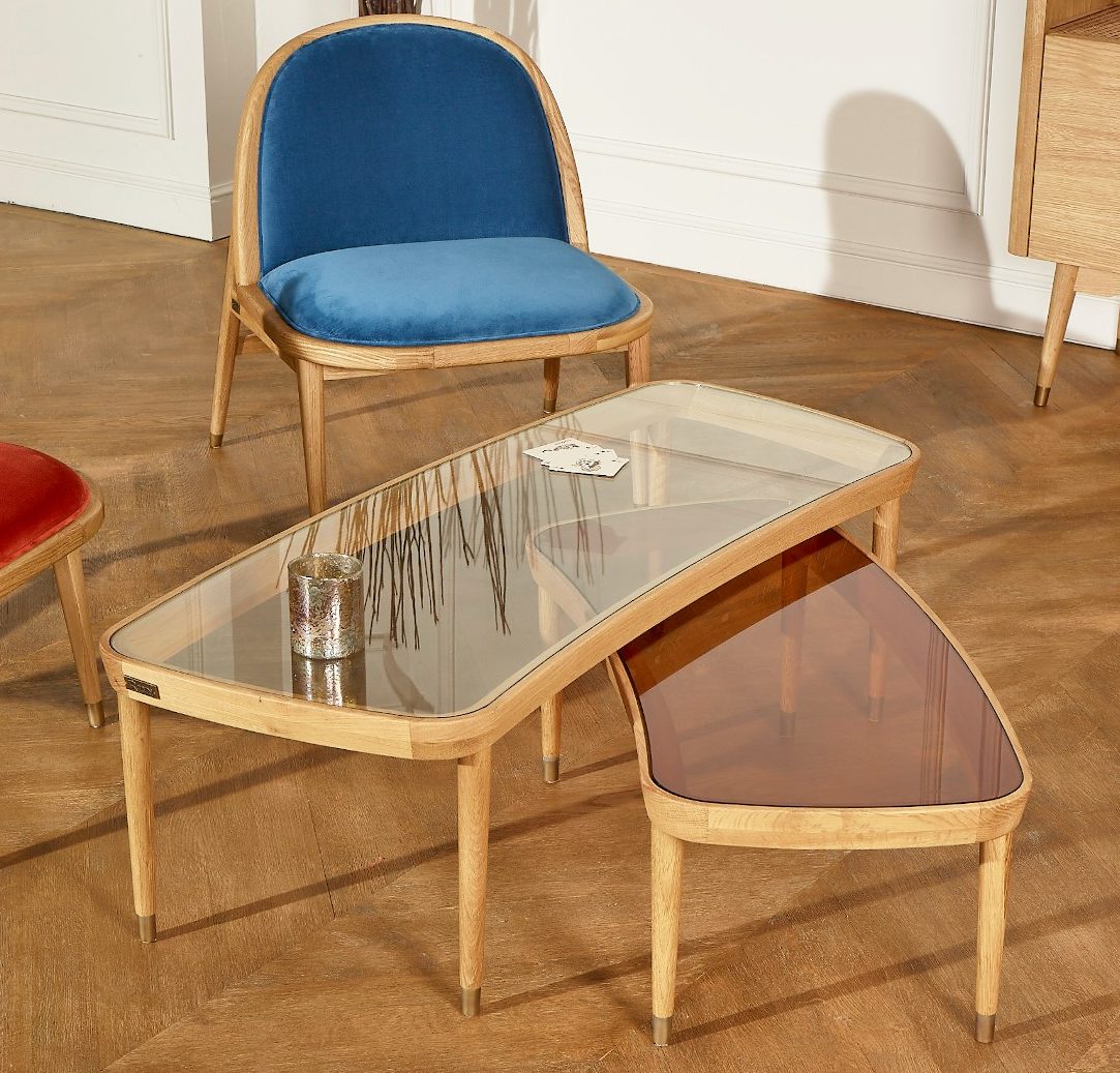 Une très jolie table basse gigogne au design novateur. Des finitions de qualité, un travail délicat du bois de chêne et du verre, choisis pour leur authenticité. Votre table basse Yvonne devient le point de mire de votre coin salon ! A associer avec les fauteuils design Suzette. Tables basses gigogne, YVONNE