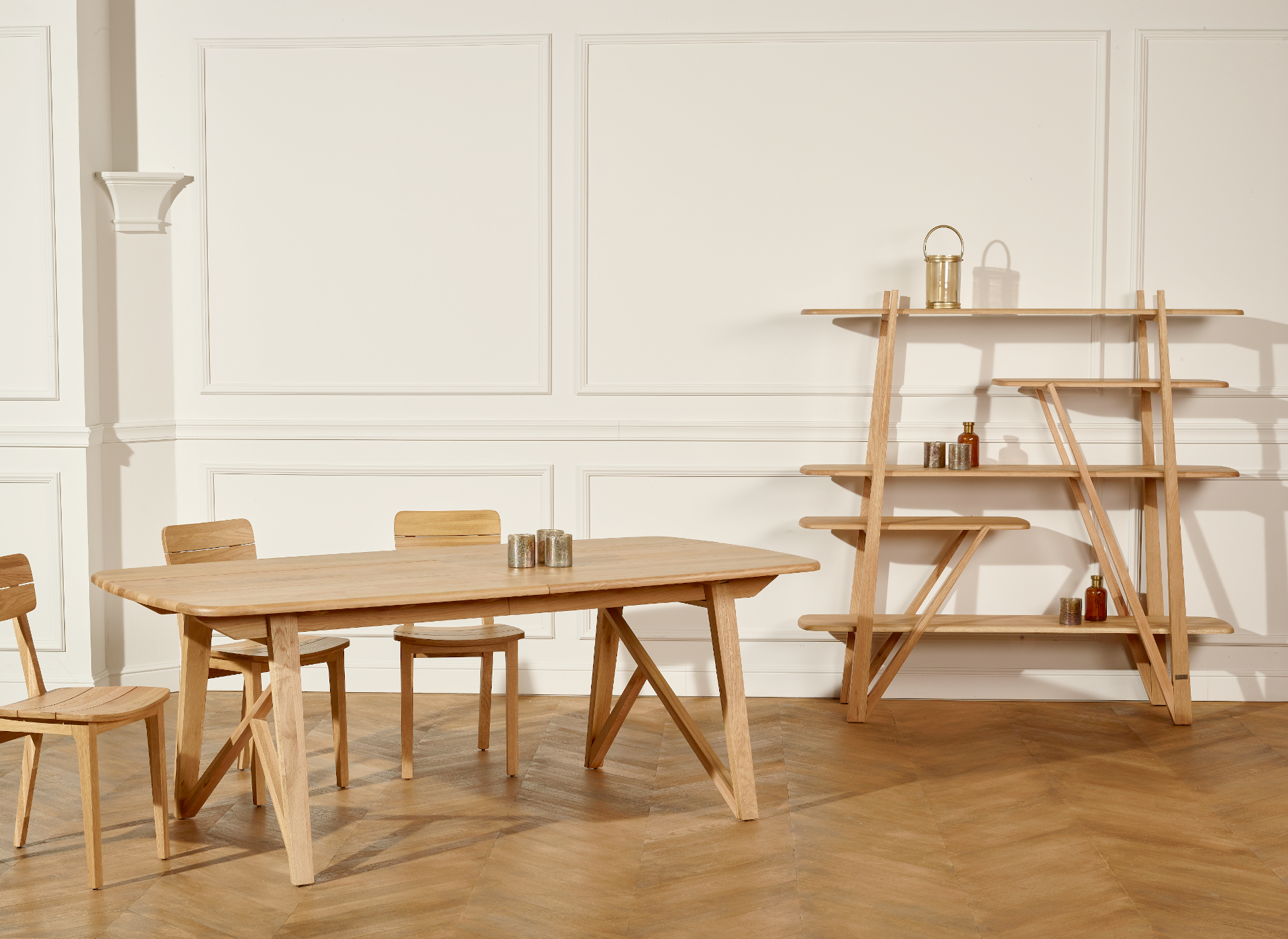 L‘étagère FERNAND , au design exclusif , est un bel hommage à la nature . Les lignes brisées de cette pièce unique, le choix du chêne massif travaillé avec finesse, évoquent les branchages d’une cabane en bois. Subtile et sobre à la fois. A associer aux chaises LUCIENNE et la table LUCETTE, à retrouver sur notre boutique…