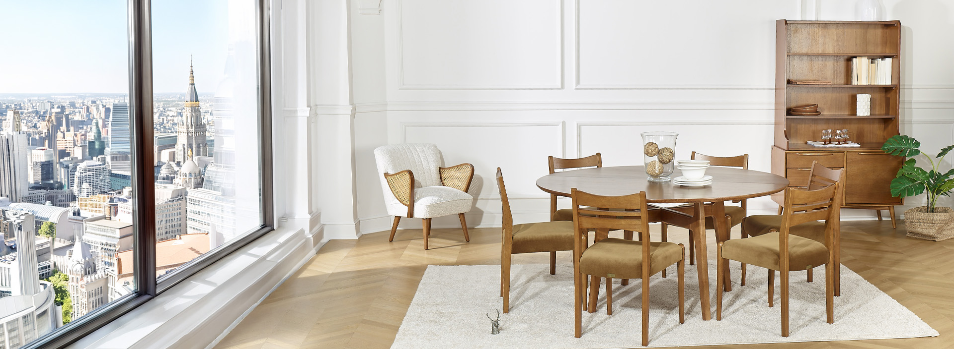 Unsere Kollektion von Vintage-Möbeln, inspiriert vom Mid-Century-Stil, interpretiert schlichte und gerade Linien neu, um die Details, die die Möbel auszeichnen, besser hervorzuheben. Perfekt im Zeitgeist lädt unsere Vintage-Kollektion dazu ein, mit Eklektizismus zu spielen, Stile und Materialien zu mischen. So können Sie den Vintage-Sessel in Entenblau, direkt aus den 60er Jahren, oder den Sessel Cuba aus Samt mit Wiener Geflecht-Armlehnen mit einem Couchtisch Marianne aus Eiche kombinieren. Ein Couchtisch Dahlia aus Holz wird für Überraschung sorgen, wenn Sie ihn mit einem stilvollen großen Sessel kombinieren!