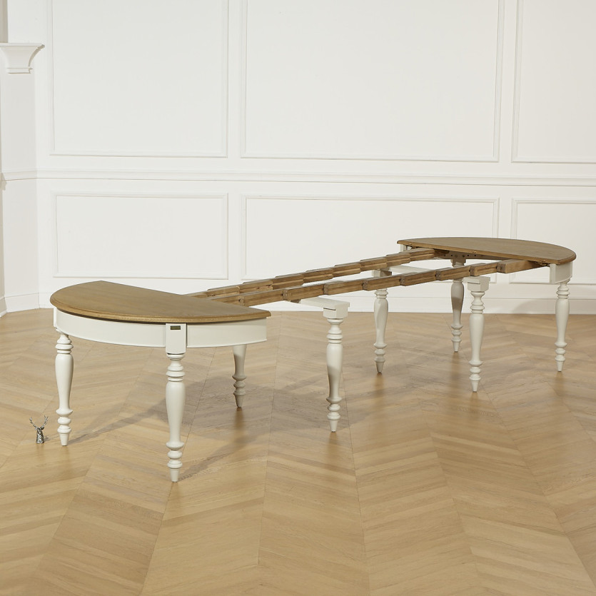 Ob Sie einen kompakten Tisch für tägliche Mahlzeiten oder einen großen Tisch für große Empfänge benötigen, dieser Esstisch passt sich dank seiner fünf Verlängerungen jeder Gelegenheit an. Er hat eine Mindestlänge von 1,70 Metern und kann problemlos bis zu 3,5 Meter erweitert werden, um bis zu 16 Personen Platz zu bieten, was jedes Treffen zu einem unvergesslichen Moment macht. Wir empfehlen, den Tisch mit mindestens einer Verlängerung zu nutzen.