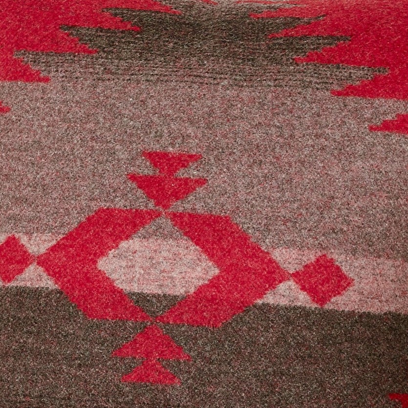 Das TIPI-Kissen ist eine Einladung zur Entspannung und verleiht gleichzeitig einen starken dekorativen Charakter. Die Vorderseite zeigt ein geometrisches Muster in tiefroten, grauen und braunen Tönen, inspiriert von traditionellen Textilien mit indianischem Einfluss. Dieses grafische und warme Design verleiht Ihrer Dekoration eine echte Persönlichkeit, zwischen handwerklichem Stil und Modernität. Der Designstoff besteht aus 80 % Wolle und 20 % Polyamid, und dieser Bezug mit reichhaltiger Textur bringt visuelle Wärme in Ihren Raum.