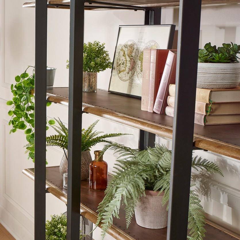 Die Bibliothek aus Holz und Metall YORK lässt sich von der industriellen Tendenz inspirieren. Ihre Transparenz und ihre grafischen Linien werden Liebhaber von Möbeln mit klaren Linien verzaubern.