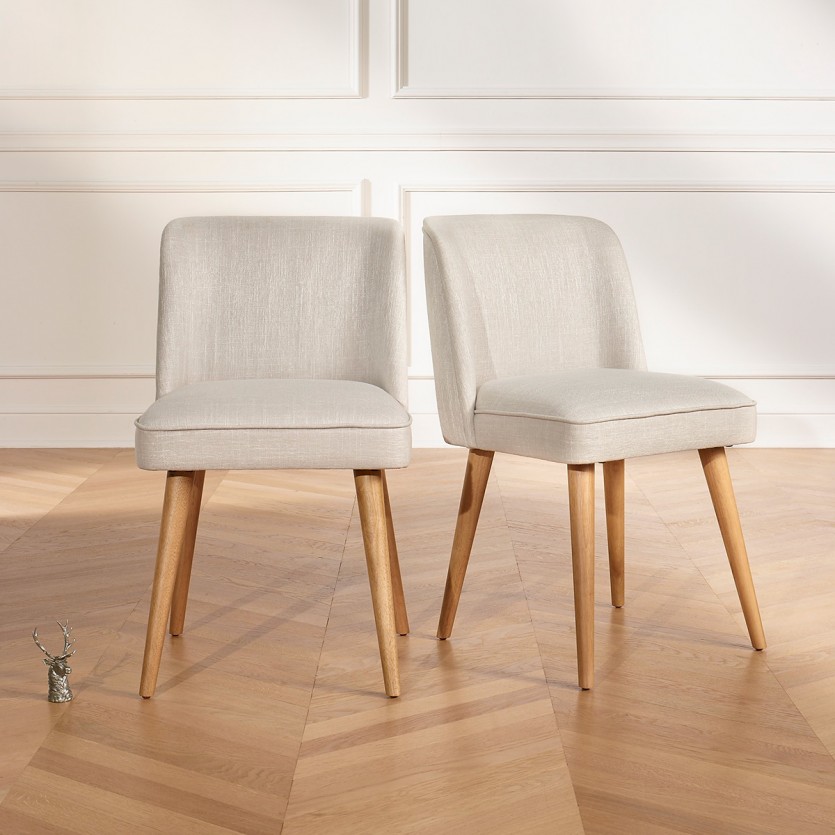 Bringen Sie den Charme des skandinavischen Stils in Ihr Zuhause mit unseren APOLLINE-Stühlen, die im 2er-Set verkauft werden. Sie verfügen über eine Struktur aus Kiefernholz und konisch zulaufende Beine aus massivem Gummibaumholz. Die Rückenlehnen und Sitzflächen aus Linum-Stoff sind mit Polyurethan-Schaum gefüllt, mit einer Dichte von 35 kg/m3 für die Sitzfläche und 27 kg/m3 für die Rückenlehne, um den bestmöglichen Komfort zu gewährleisten.