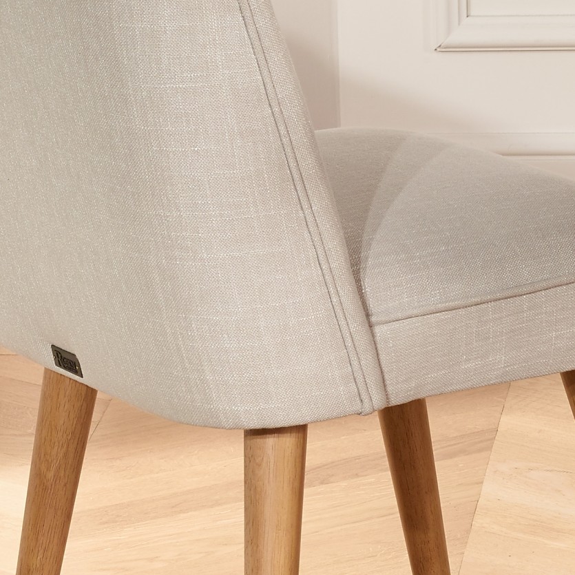 Entdecken Sie das sanfte und einladende Design unserer APOLLINE-Stühle, die eine schöne Verbindung zwischen Holz und Linum-Stoff darstellen.