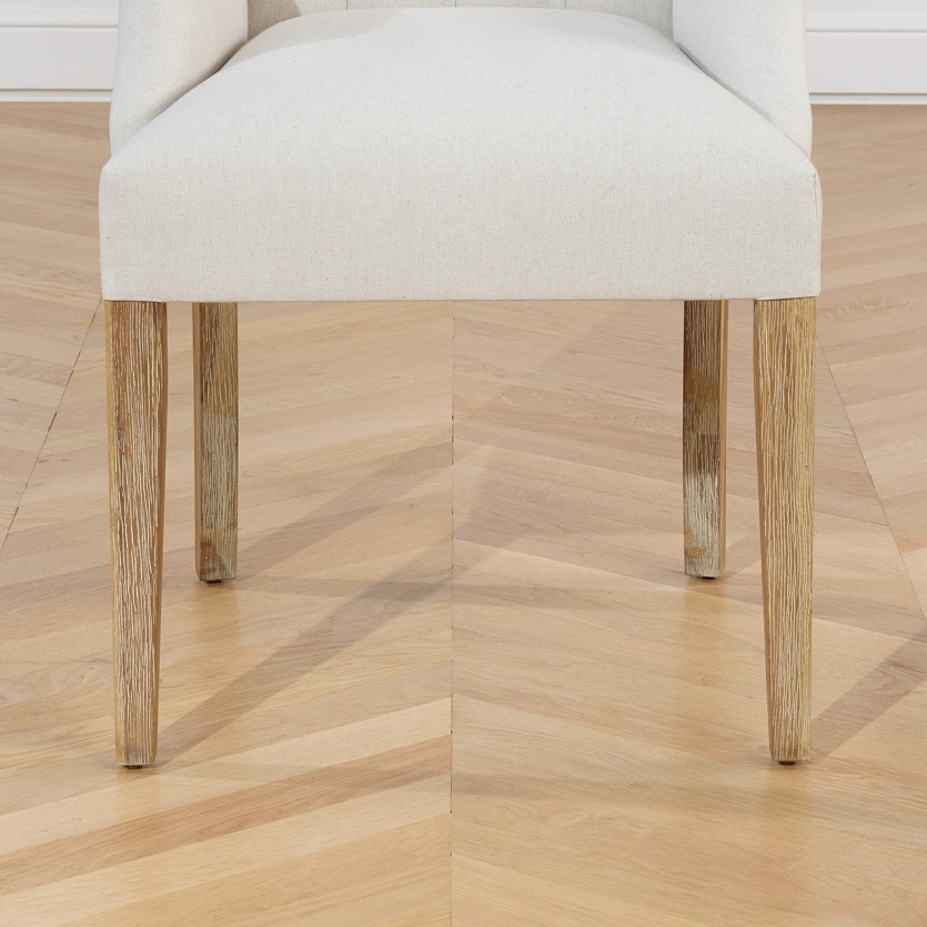 Tauchen Sie ein in die Welt des eleganten Komforts mit unserem AGATA Tischsessel. Dieses Herzstück, im unverkennbar zeitgenössischen Stil, vereint die Wärme des Holzes mit der Zartheit des Leinens und schafft so eine einladende Atmosphäre in Ihrem Esszimmer. Die robuste Struktur aus Kiefernholz kombiniert mit massiven Hevea-Beinen sorgt für Stabilität und Robustheit. Der Bezug, aus natürlichem Leinen, umhüllt eine weiche Sitzfläche, die Momente der Entspannung und Geselligkeit an Ihrem Tisch verspricht. Mit seinen klaren Linien und der mit eleganten Knöpfen gepolsterten Rückenlehne verkörpert AGATA Raffinesse. Jedes Detail, von der Textur des Stoffes bis zur harmonischen Holztönung, wurde durchdacht, um sich in Ihre Inneneinrichtung einzufügen und einen Hauch zeitloser Eleganz hinzuzufügen. Seine Paspelierung betont die klaren Linien.