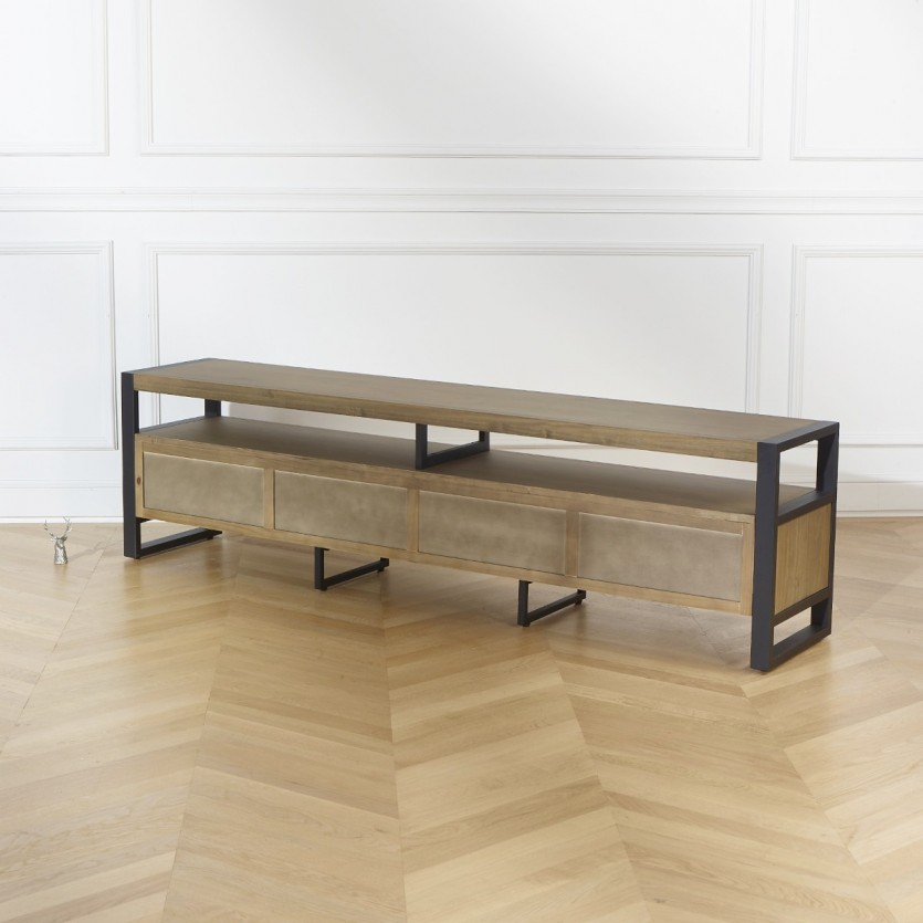 Gestalten Sie Ihr industrielles Wohnzimmer mit diesem TV-Möbel aus Holz und Metall, für ein garantiert modernes Ambiente!