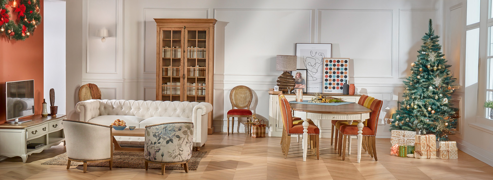 Sofas, armchairs, coffee tables, TV stands, dining tables, sideboards, dining chairs, beds, nightstands, desks… Robin des Bois offers furniture for every room in your home. Whether you're looking for a dining table, occasional armchairs for the living room or bedroom, wooden chairs for your kitchen’s breakfast nook, a sideboard, console, or bookshelf for the entryway... Let yourself be captivated by our exclusive wooden furniture, both robust and timeless. They’ll stay with you for many years to come.