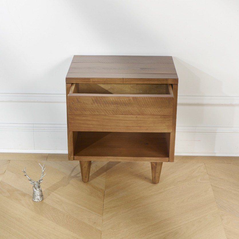 The BRADLEY bedside table is an essential piece to bring warmth and elegance to your bedroom. Made entirely of solid pine, it charms with the beauty of its wood enhanced by a carefully stained and patinated finish.
