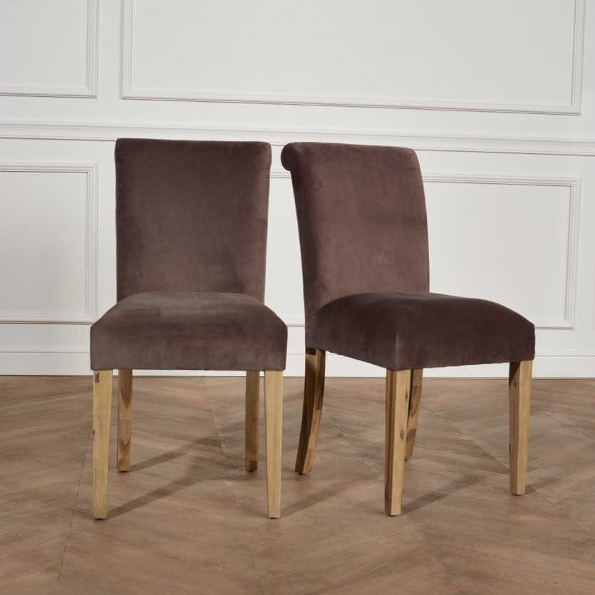 Discover our ALIX chairs with a contemporary style that are very comfortable. Artisanally made, they are designed with wood and have a cushioned seat and backrest covered in cotton velvet with vibrant colors.