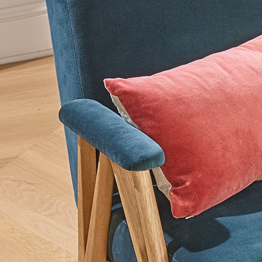 El asiento, el respaldo y los reposabrazos acolchados, cubiertos con una tela de terciopelo 100% algodón, ofrecen un confort óptimo y un tacto suave.