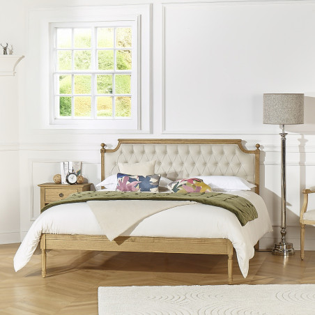 Sus líneas acanaladas, visibles en la cabecera y las patas, realzan el carácter cálido del roble macizo. El generoso capitonado de la cabecera te invita a acomodarte cómodamente para leer, ver una película o simplemente disfrutar de un momento de relax. Cubierta con una tela de lino y algodón, es agradable en el día a día y conserva su brillo año tras año. Su acabado en doble ribete resalta su línea elegante y preserva la nitidez de los bordes y ángulos capitonados con el tiempo.