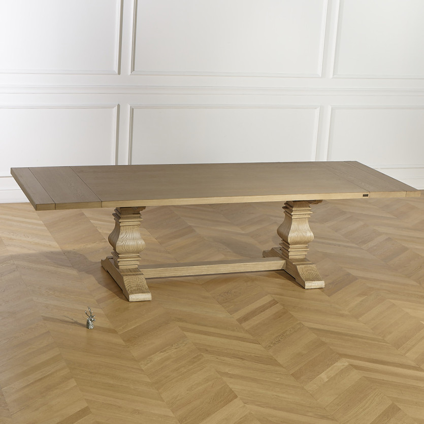 Descubra la mesa extensible PENELOPE, una verdadera pieza central para cualquier comedor. Su diseño elegante, impregnado de tradición, está perfectamente adaptado a interiores contemporáneos mientras respeta los códigos clásicos.
