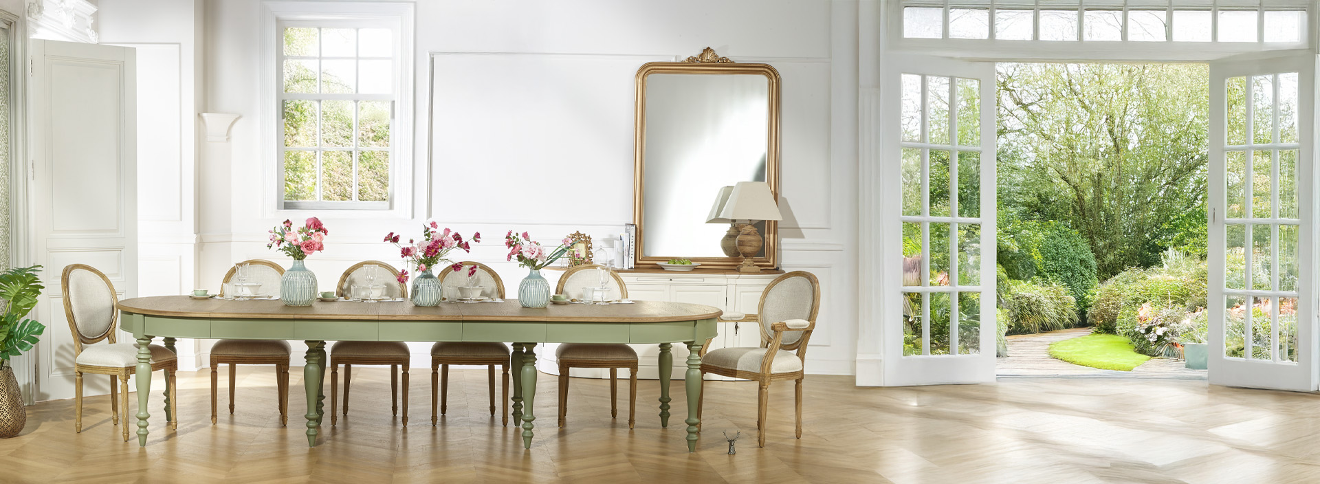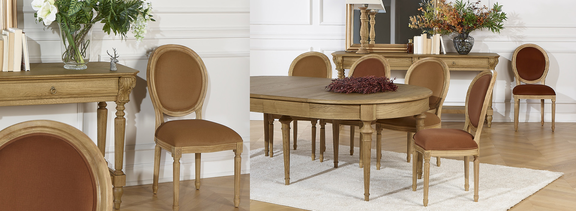 Notre collection de meubles Shabby Chic, d'inspiration classique, revisite notre riche héritage de meubles de style français. Patines à l'ancienne aux teintes chaudes, plateaux en chêne, courbes voluptueuses et sculptures raffinées, la collection Shabby Chic plébiscite un certain "art de vivre à la française". Découvrez nos fauteuils cabriolets Victor de style Louis XV, notre table AUDE aux pieds tournés, nos chaises médaillon, nos commodes en bois aux formes galbées. Laissez-vous surprendre par cet univers baroque et romantique, que nous aimons parfois, bousculer par des choix de tissus très contemporains ou des matériaux modernes.