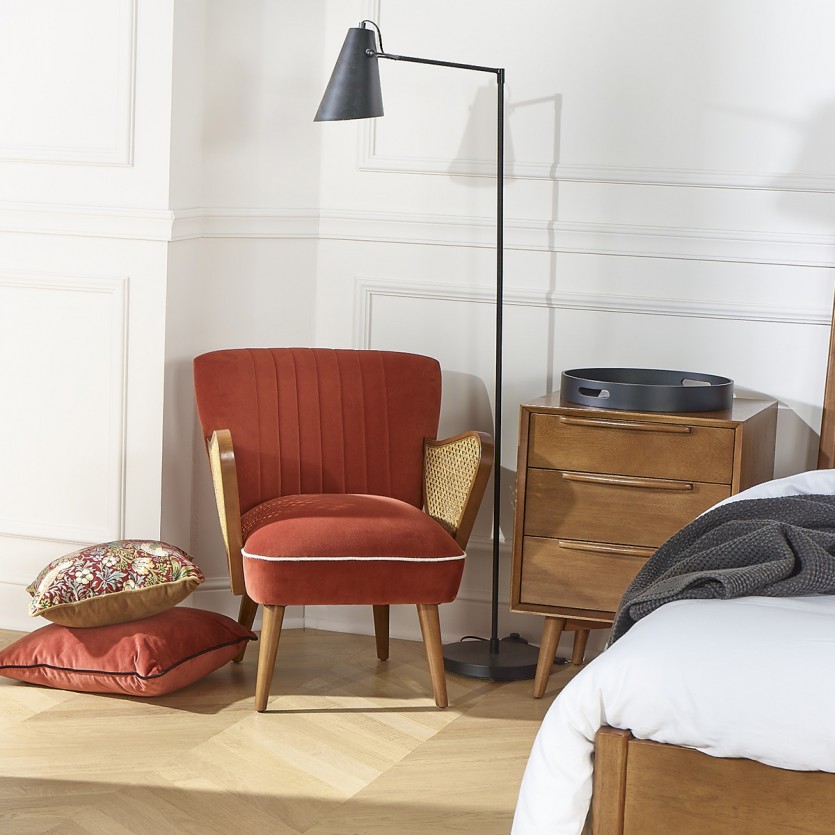 Laissez-vous séduire par le charme intemporel de notre fauteuil SEVENTY. Inspiré des années 70, notre fauteuil artisanal conçu en velours, en bois et en cannage évoque la beauté du design scandinave.