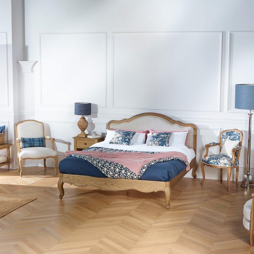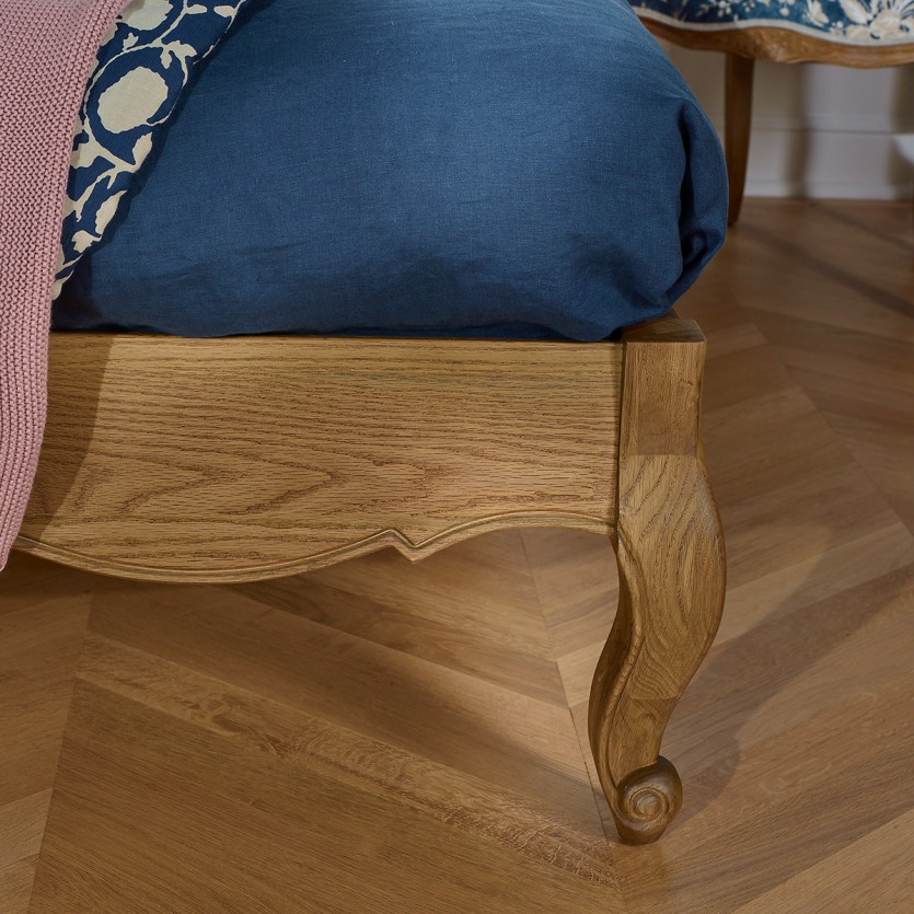 La solidité de sa structure et de ses pieds en chêne massif promet une excellente tenue dans le temps. Sa tête de lit, délicatement habillée de lin premium, apporte élégance et confort au quotidien.