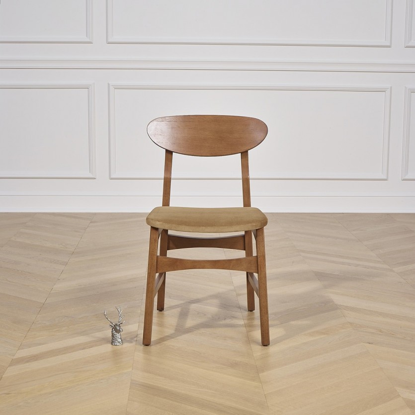 Le sedie DALHIA, vendute in set da 2, combinano eleganza scandinava e comfort, con la loro struttura in legno massiccio di hevea e il rivestimento in velluto di cotone color cammello. Ogni sedia è realizzata artigianalmente per un risultato unico e singolare.
