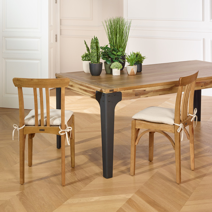 Le sedie Bistrot CALBAR, con la loro struttura in rovere massiccio, sono ideali per arredare il tuo interno con una presenza marcata. Che si tratti di una cena in famiglia o di un caffè mattutino, queste sedie offrono un supporto confortevole e stabile.