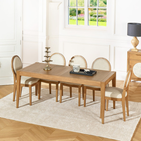 Il suo formato generoso di 180 cm assicura un vero comfort per 8 persone, pur preservando la fluidità di circolazione nel tuo interno. La sua progettazione tutta in rovere e la sua estetica contemporanea ne fanno un mobile autentico e durevole, che ti accompagnerà per molti anni. Uno spazio per i pasti che coniuga armoniosamente praticità quotidiana ed eleganza senza tempo.