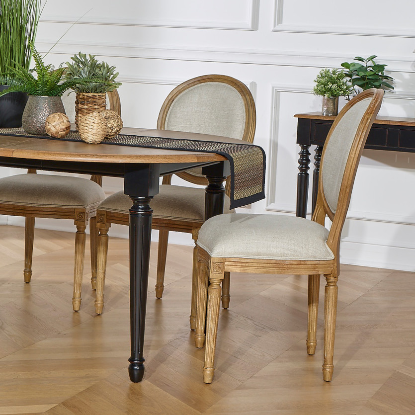 Tavolo da pranzo estensibile AUDE - Stile shabby chic in rovere, gambe bianche, 6/14 coperti
