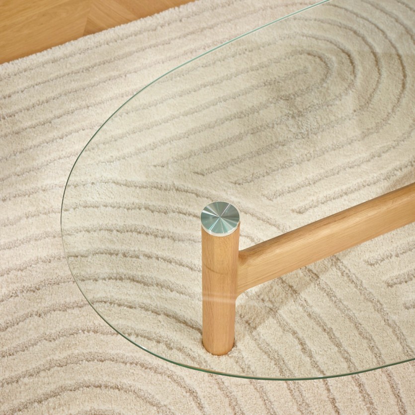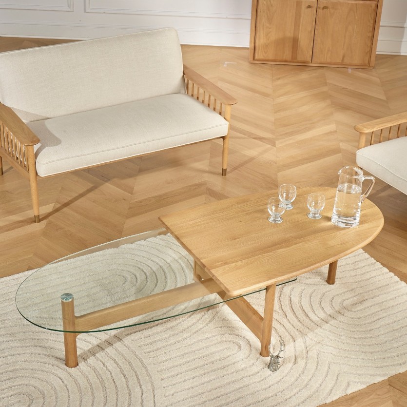 Le gambe, anch'esse in rovere massiccio, garantiscono una perfetta stabilità e valorizzano l'estetica del legno. Grazie alle sue linee pulite e alla sua forma ovale finemente lavorata, il tavolino VANCOUVER si integra perfettamente sia in un interno contemporaneo che in uno spazio più classico.
