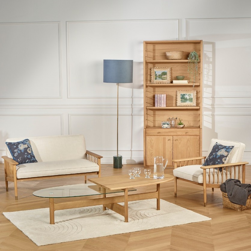 Dai al tuo salotto una dimensione completamente nuova con il tavolino VANCOUVER. I suoi piani in rovere e vetro temperato di dimensioni generose e le eleganti gambe in legno ne fanno un pezzo senza tempo. Troverà facilmente posto in un salotto moderno.
